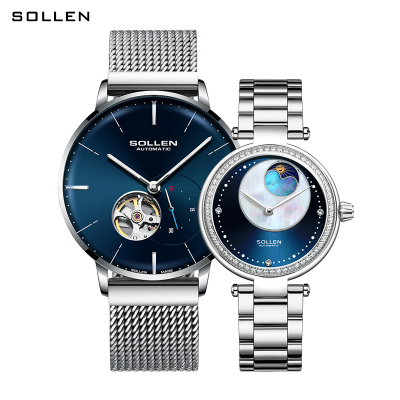 梭伦(SOLLEN)正品手表ins风简约时尚商务镂空一对1314情侣表自动机械表潮流女男士手表SL1314