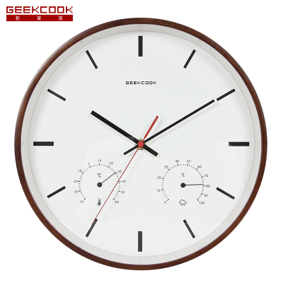 极客库GEEKCOOK12寸木质挂钟客厅圆形石英挂钟静音客厅时钟温湿度计创意挂表GK100077