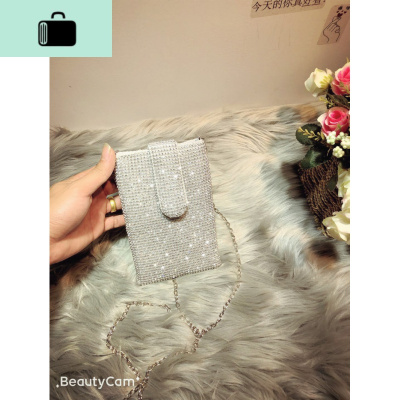ins凹造型超闪水钻大号三星苹果手机袋女包链条斜跨包零钱小包袋NEW LAKE女士钱包/卡包