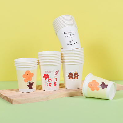 [补贴10%]50只ins风纸杯简约笑脸格子一次性杯子加厚家用水杯办公室咖啡杯茶杯