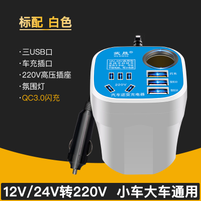 [补贴10%]车载逆变通用12v24v转220v多功能电源转换器充电器插座手机充电器 魔方白色[智享12v小车专用款]带