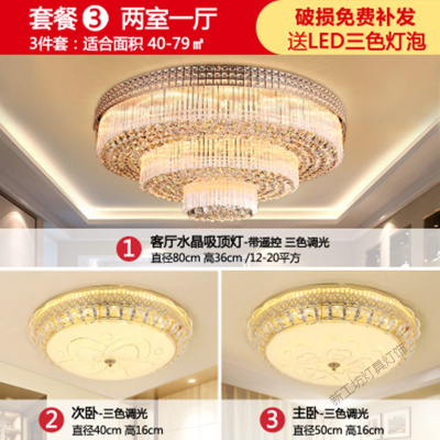 苏宁放心购 照明酒店大堂灯欧式吸顶灯LED水晶灯客厅灯圆形吸顶灯豪华大气水晶餐厅灯全屋灯具套餐组合卧室灯