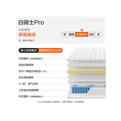 喜临门-白骑士pro 2cm乳胶7区分区弹簧床垫3D芯材床垫 软硬适中