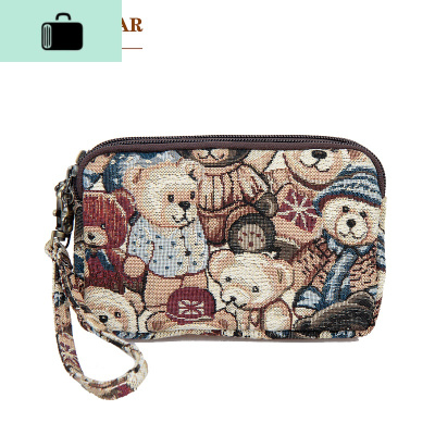 小熊三拉链迷你手包手拿包手抓包女小包可爱帆布多层6p手机零钱包NEW LAKE女手包