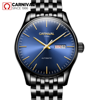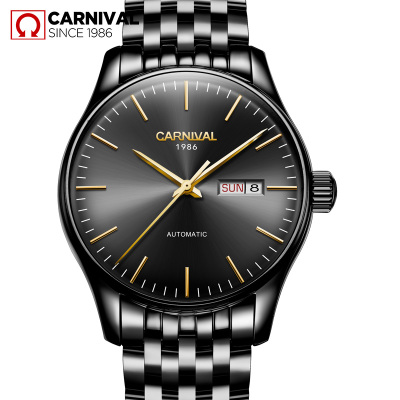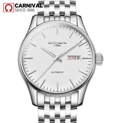 瑞士嘉年华Carnival手表精钢全自动机械表 男表金属男士薄款防水商务休闲时尚简约腕表经典双日历8612G专柜同款