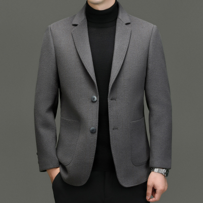 双面呢西服外套羊绒大衣男春秋季中年商务100纯羊毛双面呢羊毛呢子中长款西装领羊绒毛呢大衣外套品牌