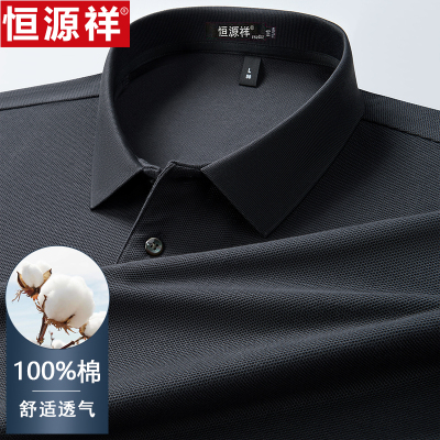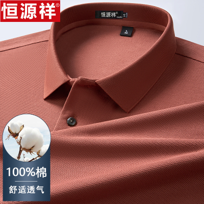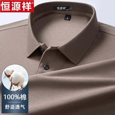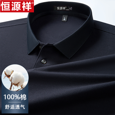 恒源祥中老年男士纯棉翻领长袖t恤polo衫秋季爸爸装翻领打底上衣