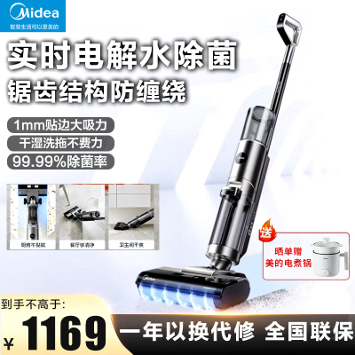 美的 二代手持智能除菌洗地机X9 家用IOT无线拖地机自清洁吸洗拖扫一体吸尘器LCD交互