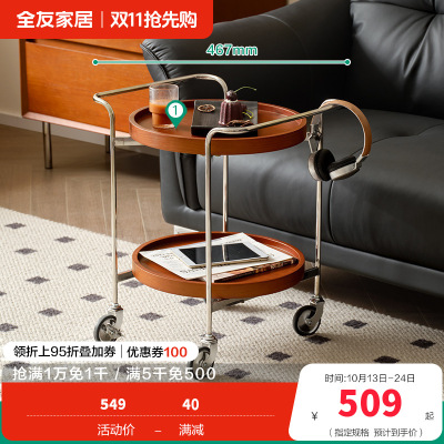 全友家居 意式极简茶几客厅可移动置物架沙发边几卧室床头桌子 【复古棕】边几 详询客服