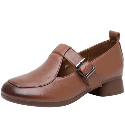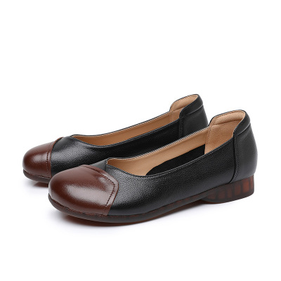 25春秋款复古真皮软底妈妈鞋中老年四季奶奶鞋舒适休闲浅口单鞋女