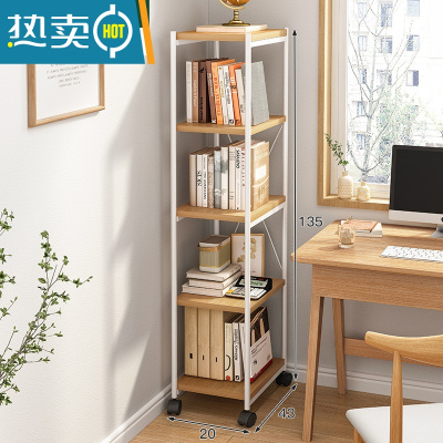 敬平书架落地置物架简易床头可移动推车课桌边书桌收纳窄小型夹缝架子