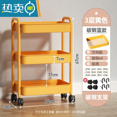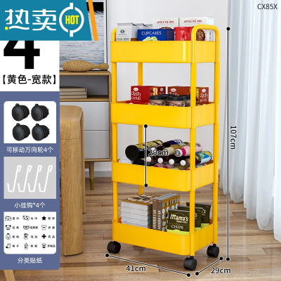 敬平宿舍落地置物架多层小推车收纳架移动厨房客厅卧室床头柜零食架子