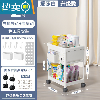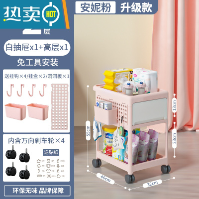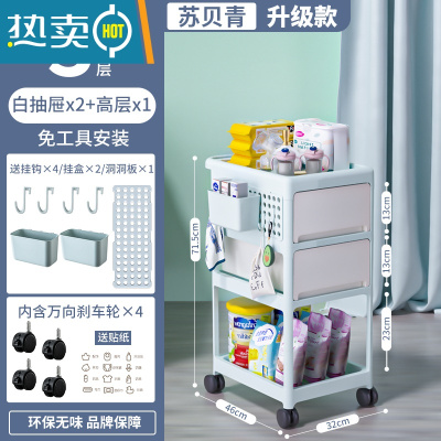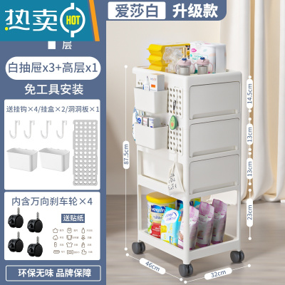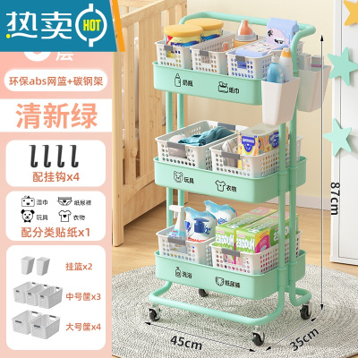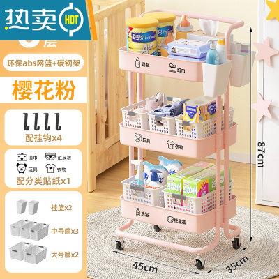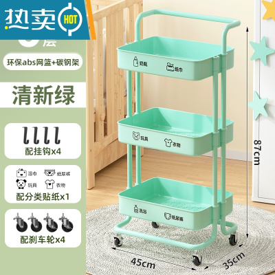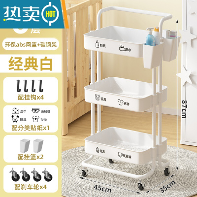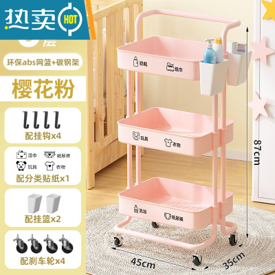 敬平婴儿用品置物架小推车落地多层新生儿卧室床头移动厨房储物收纳架