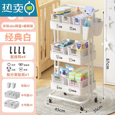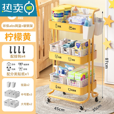 敬平婴儿用品置物架小推车落地多层新生儿卧室床头移动零食收纳储物架
