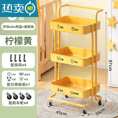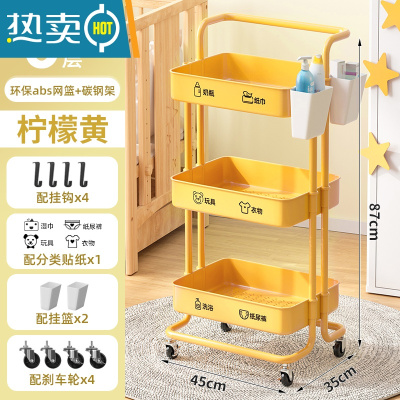 敬平婴儿用品置物架小推车宝宝储物卧室床头移动多层零食车收纳架