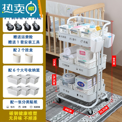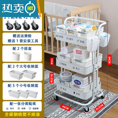 敬平婴儿用品小推车置物架落地多层新生儿卧室床头移动零食收纳储物架