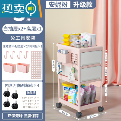 敬平婴儿用品置物架新生儿卧室床头移动多层推车宝宝零食收纳柜储物架
