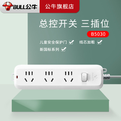 公牛插座带儿童防触保护门电源接线板 插排插座 拖线板 3插位 B5030 新国标 长1.8米 B5030-1.8米