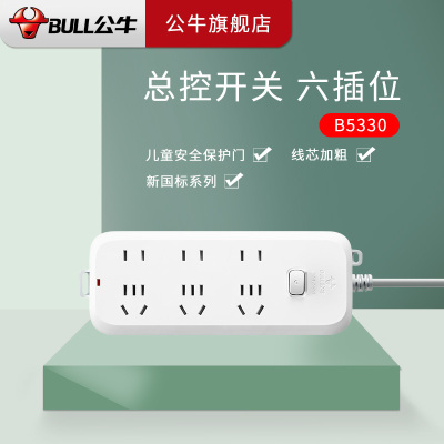 公牛(BULL)新国标带保护一转多插座插线排插插头转换器电源插座无线扩展插座接线板拖线板插排
