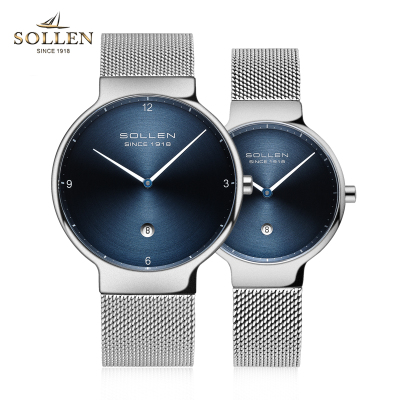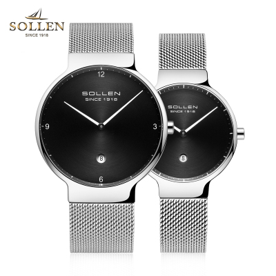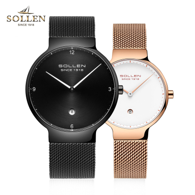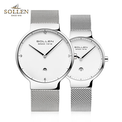 梭伦SOLLEN正品手表30米生活防水简约时尚商务休闲男女表钢带情侣手表对表