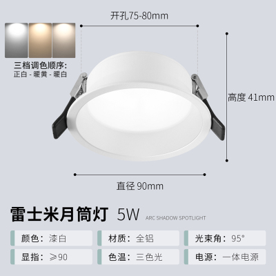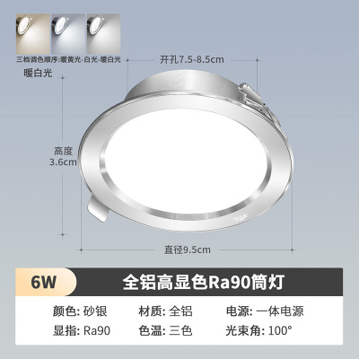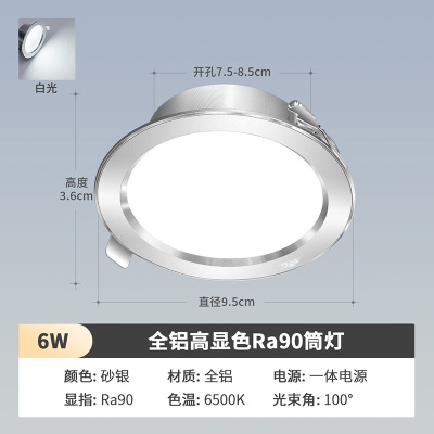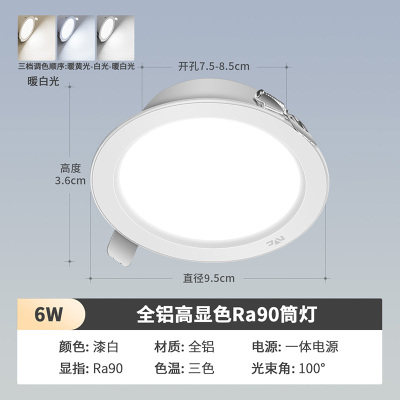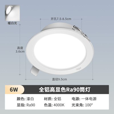 LED筒灯嵌入式天花灯全铝材全白4寸12W开孔120-130mm 黄光(3000K)
