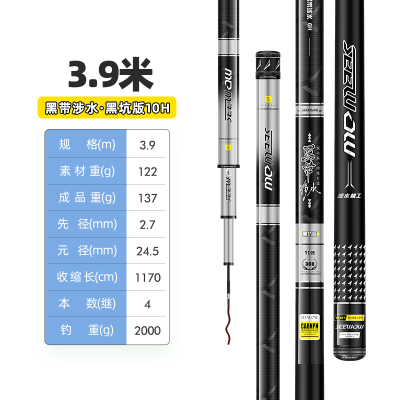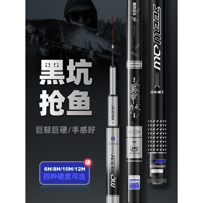 黑带涉水精工鱼竿黑坑版6h鱼竿10h黑坑飞磕竿19调8h超轻超硬12h手竿台钓竿抢鱼偷驴杆