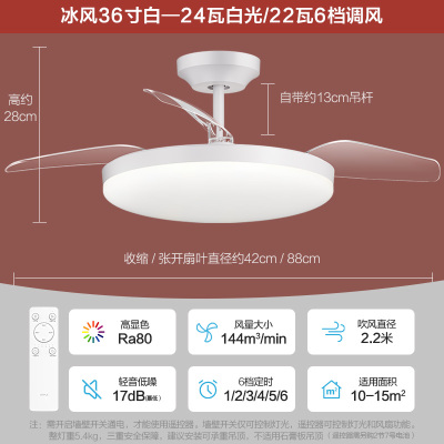欧普隐形电风扇灯吊扇灯led餐厅美式吊灯卧室客厅欧式灯具中式灯饰餐厅灯 智能调光送遥控器
