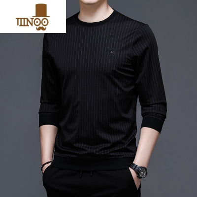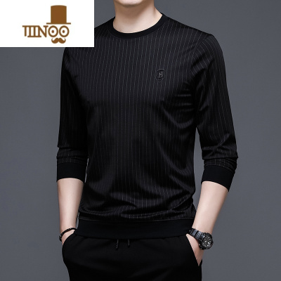 YANXU2022薄款圆领长袖卫衣男士竖条纹t恤休闲男装打底衫