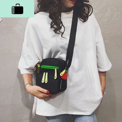 帆布撞色小包包女百搭尼龙单肩斜挎手机零钱包韩版简约个性笑脸包NEW LAKE