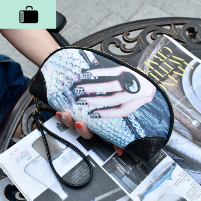 韩版彩绘女手拿包大容量手包涂鸦手抓包韩版印花手机贝壳小包钱包NEW LAKE