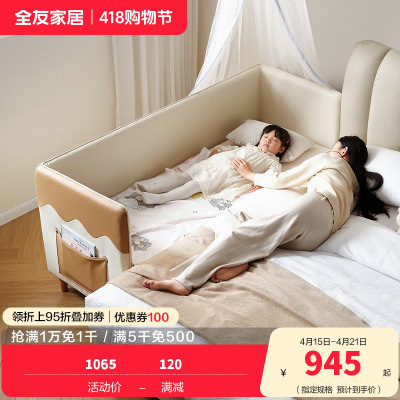 全友家居实木儿童床卧室婴儿床带护栏儿童拼接床