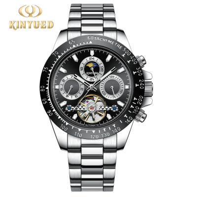 新款KINYUED全自动机械男士手表商务风带星期/月相多功能机械表男表