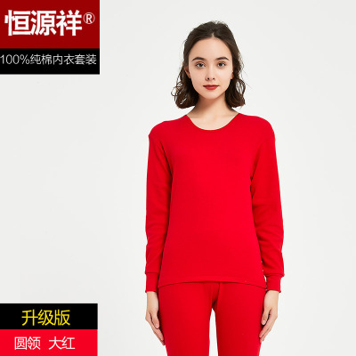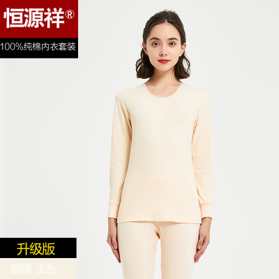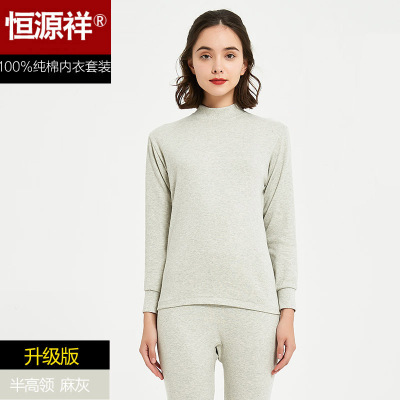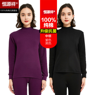 猫人秋衣秋裤女士中领薄款纯棉修身保暖内衣套装A类云朵棉棉毛衫
