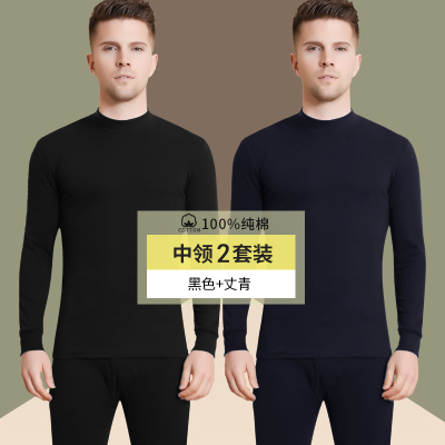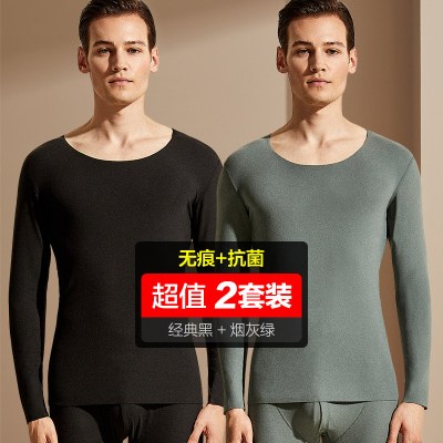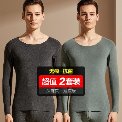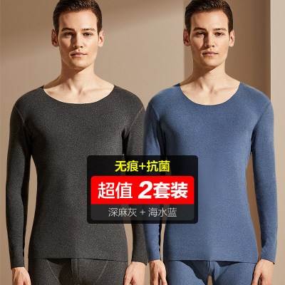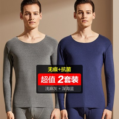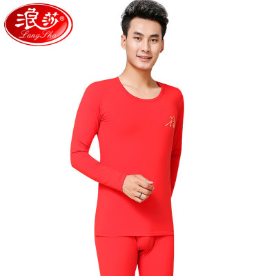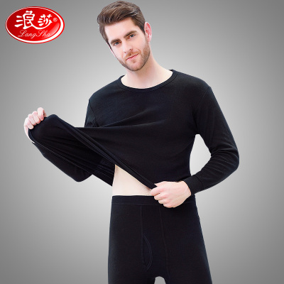 浪莎langsha男女士秋衣秋裤春秋冬中厚款纯棉圆领基础打底内衣棉毛衫套装