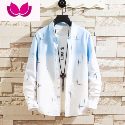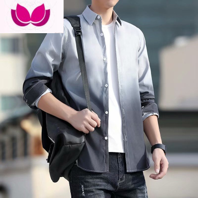 七斓2023渐变衬衫男长袖韩版修身学生潮流帅气衬衣服男生薄款外套