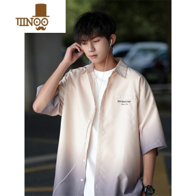 YANXU渐变色短袖衬衫男夏季薄款美式高街潮流半袖衬衣宽松大码学生外套