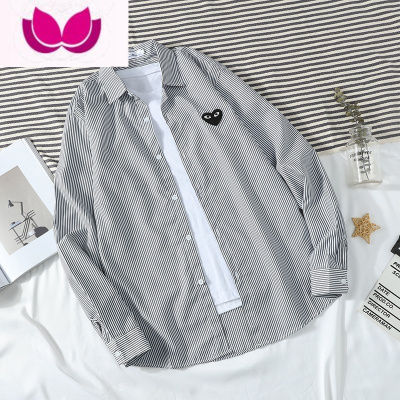 七斓2021夏季薄款川久衬衫男女情侣条纹长袖外套经典保玲爱心衬衣学生