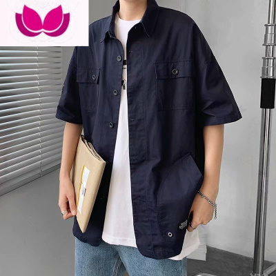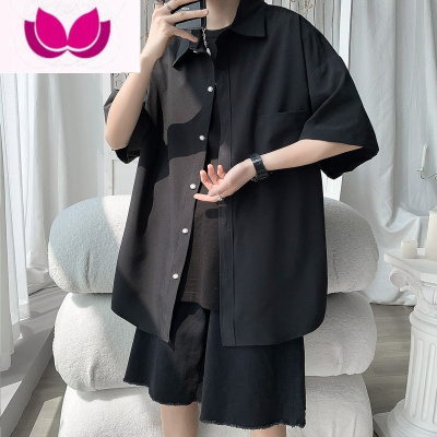 七斓夏季薄款短袖衬衫男生港风日系学生帅气休闲外套潮流宽松工装衬衣