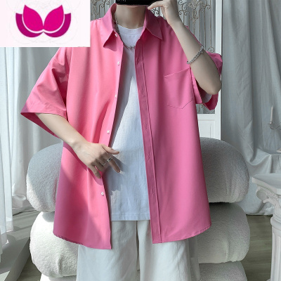 七斓纯色冰丝衬衫男短袖薄款宽松半袖衬衣夏季学生百搭帅气垂感上衣服
