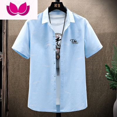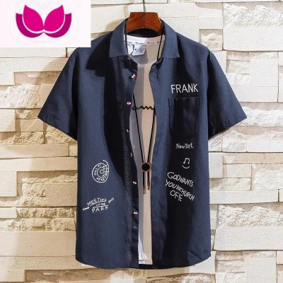 七斓痞帅男士短袖衬衫学生潮流帅气衬衣韩版男装外套薄款寸衣男