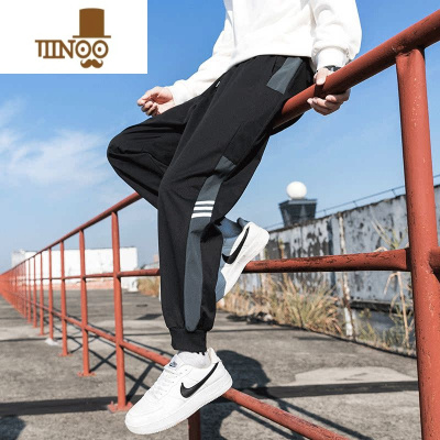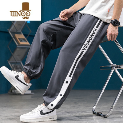七斓直筒运动裤男卫裤学生帅百搭侧条纹夏季薄款休闲三条杠长裤子