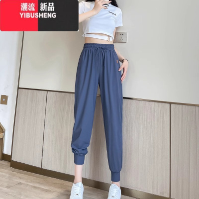 YIBUSHENG冰丝运动裤女季薄款速干卫裤束脚小个子学生显瘦防晒休闲灯笼裤