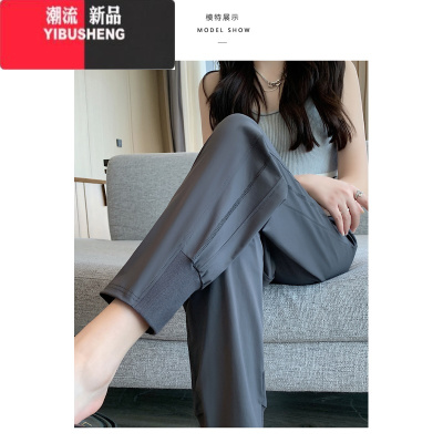 YIBUSHENG灰色冰丝运动裤女季薄款速干工装裤束脚学生跑步防蚊休闲防晒裤