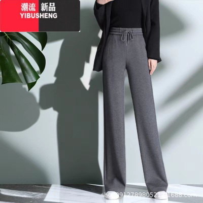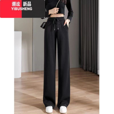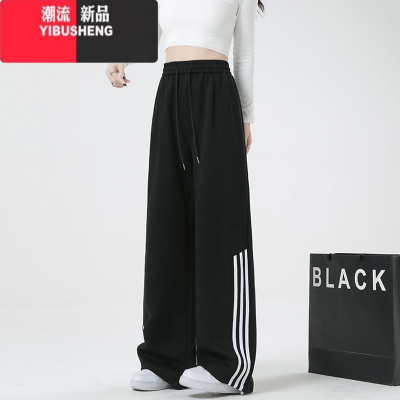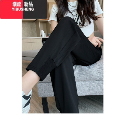 YIBUSHENG多巴胺穿搭速干运动裤女季薄款高腰垂感宽松学生直筒阔腿休闲裤