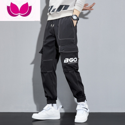 七斓薄款工装裤男耐磨初中学生宽松束脚机能休闲青少年百搭运动裤