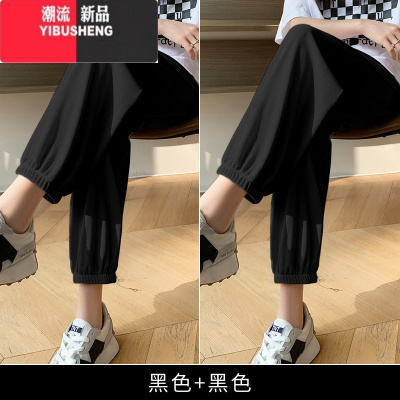 YIBUSHENG冰丝运动裤女季薄款2024新款速干休闲裤学生跑步防蚊防晒工装裤