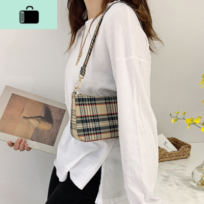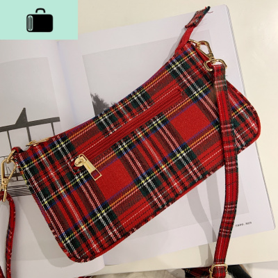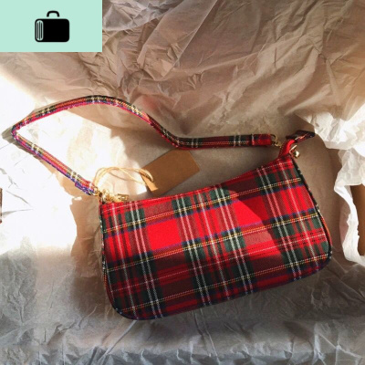 法棍包复古红格子女包小红书同款2020新款夏季百搭单肩手提腋下包NEW LAKE女士单肩包