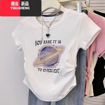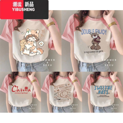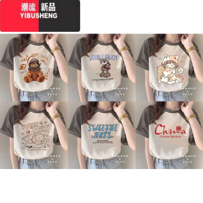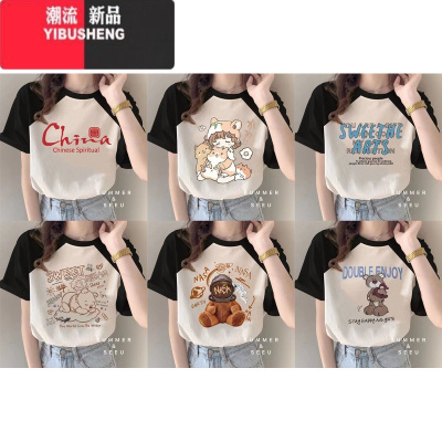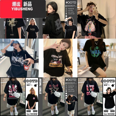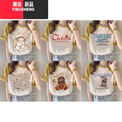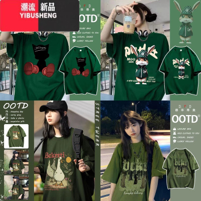 YIBUSHENG2024潮酷街头百搭情侣装男女同款印花短袖T恤ins新款宽松显瘦