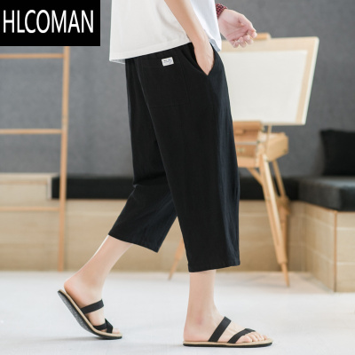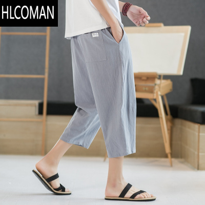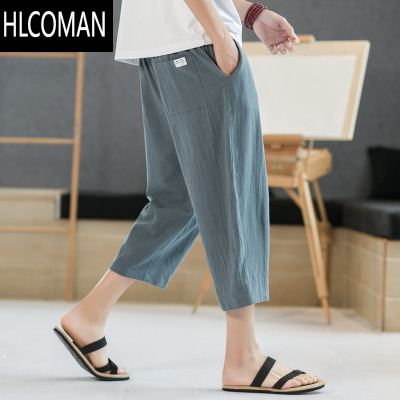 HLCOMAN男短裤七分裤外穿2022新款夏季薄款休闲中裤子6宽松亚麻7分裤