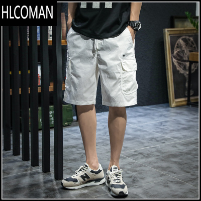 HLCOMAN白色短裤男夏季薄款2025新款潮牌男士外穿五分中裤休闲裤子男夏款